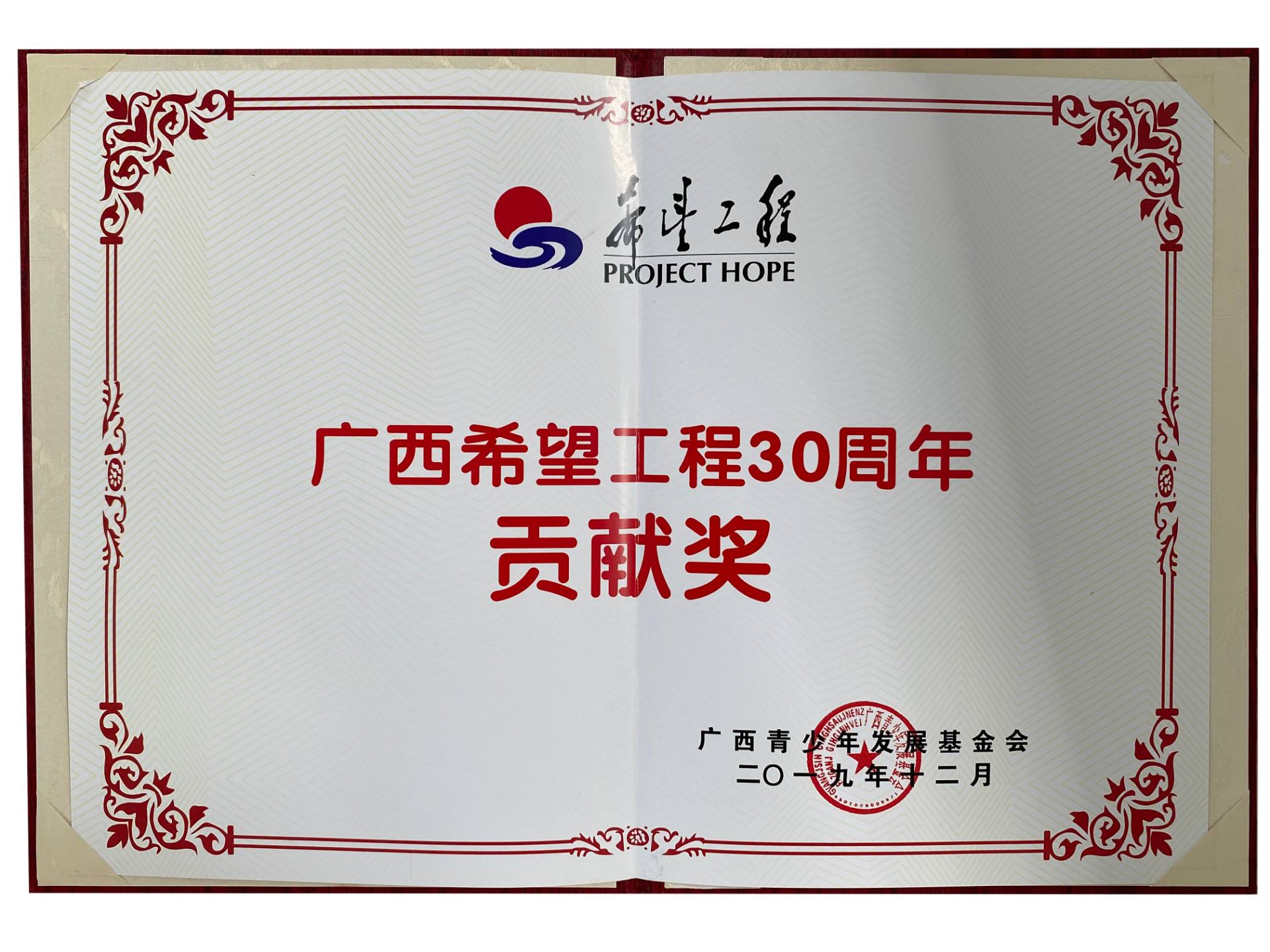 2019廣西希望工程貢獻(xiàn)獎(jiǎng)